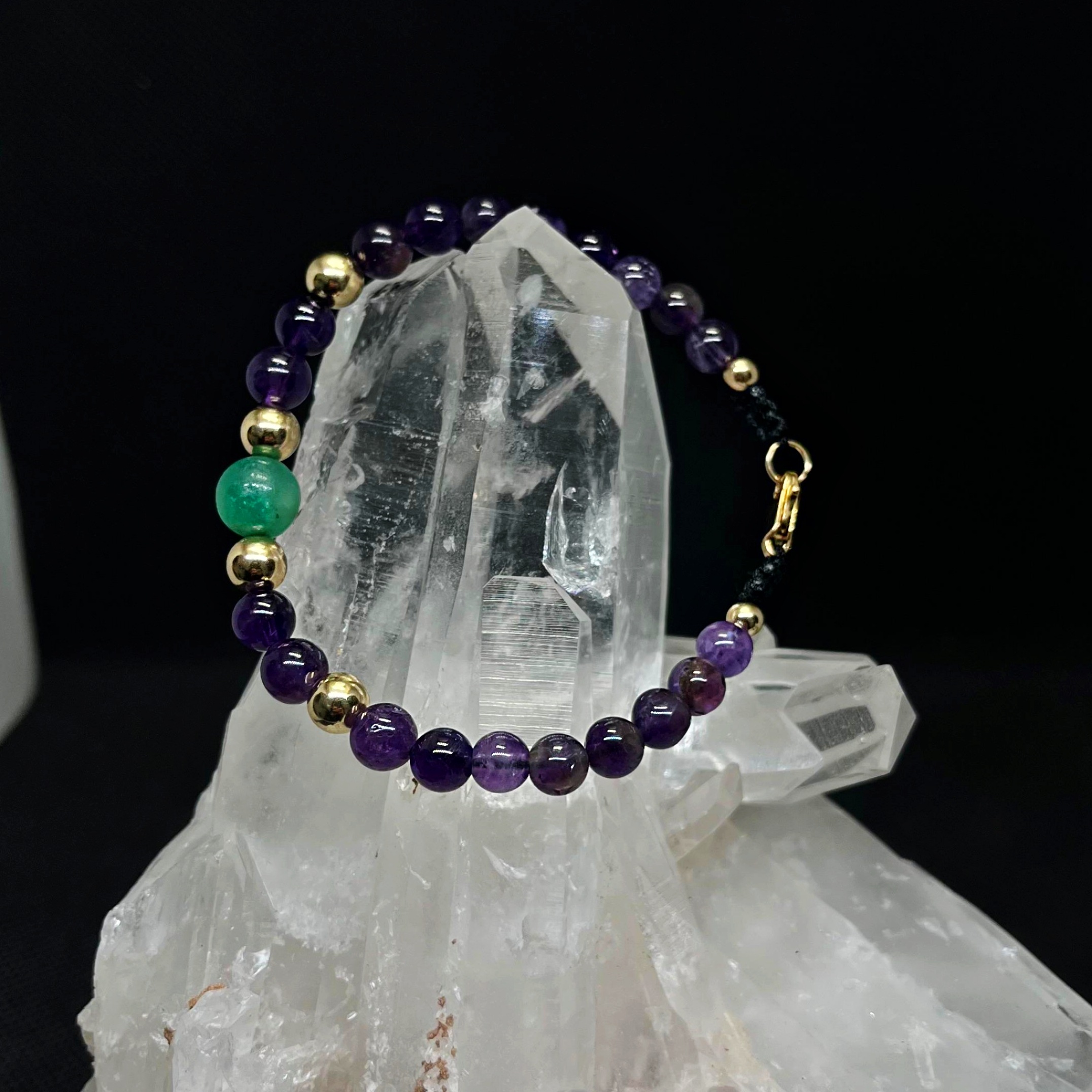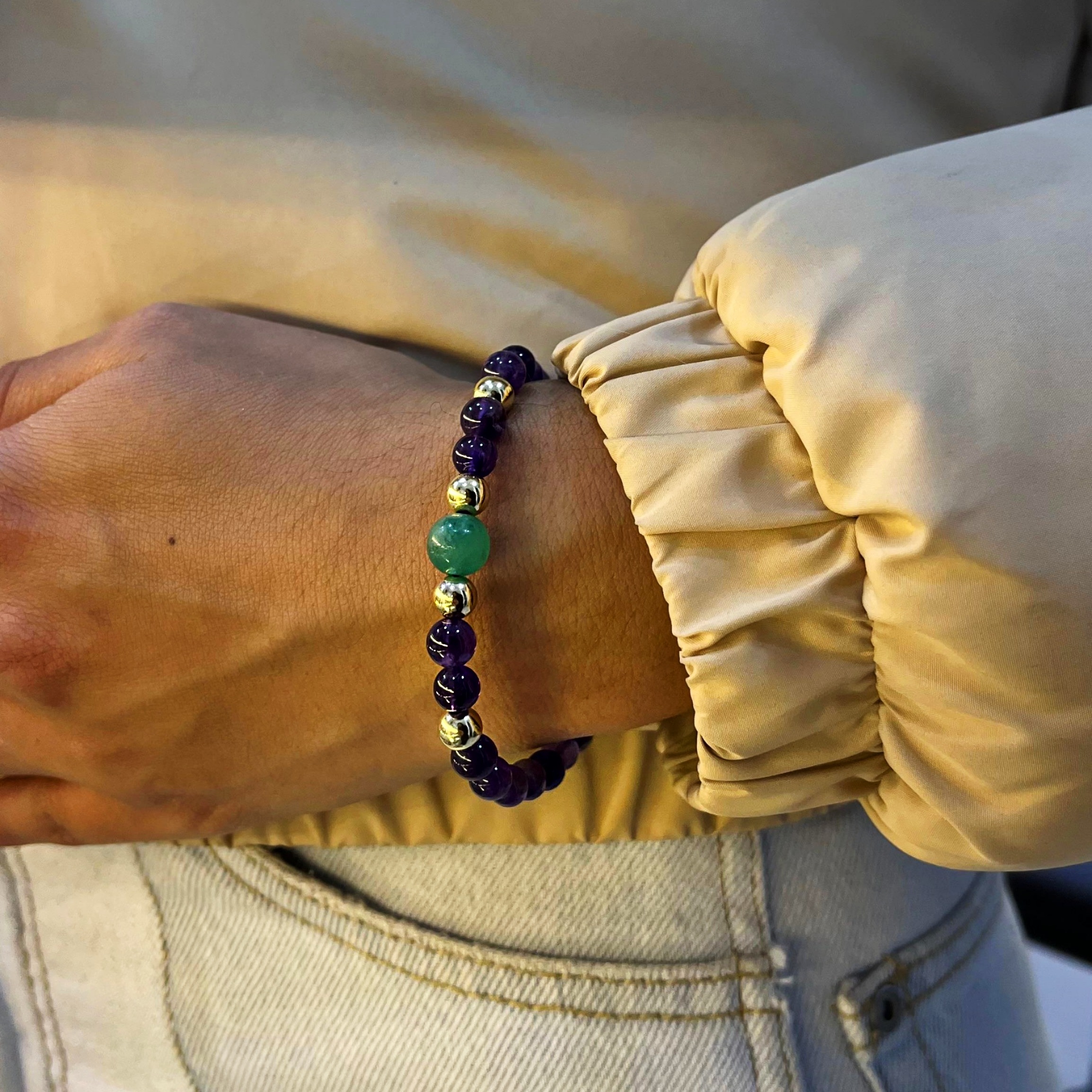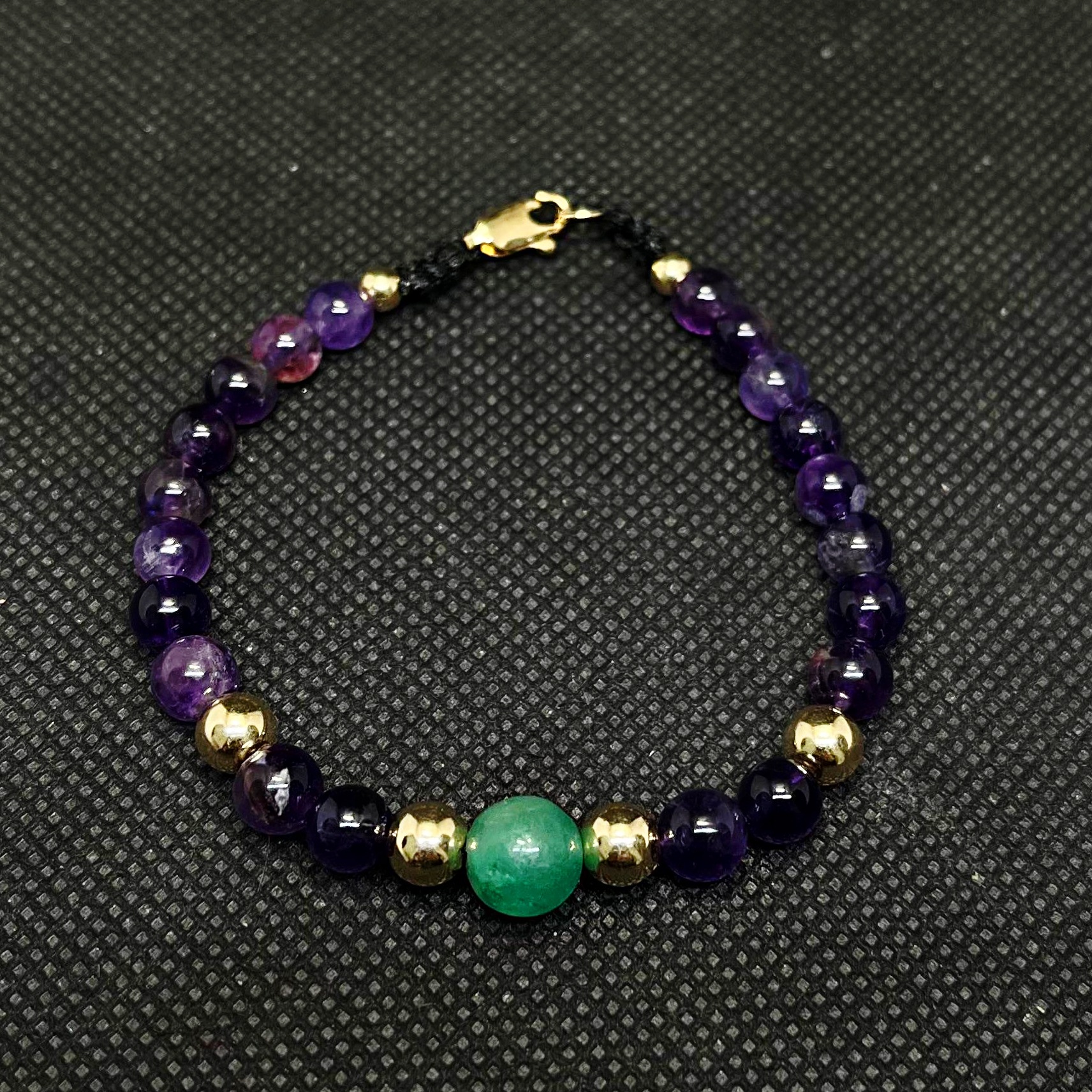 Pulsera para dama: Amatista, oro laminado y esmeralda colombiana.